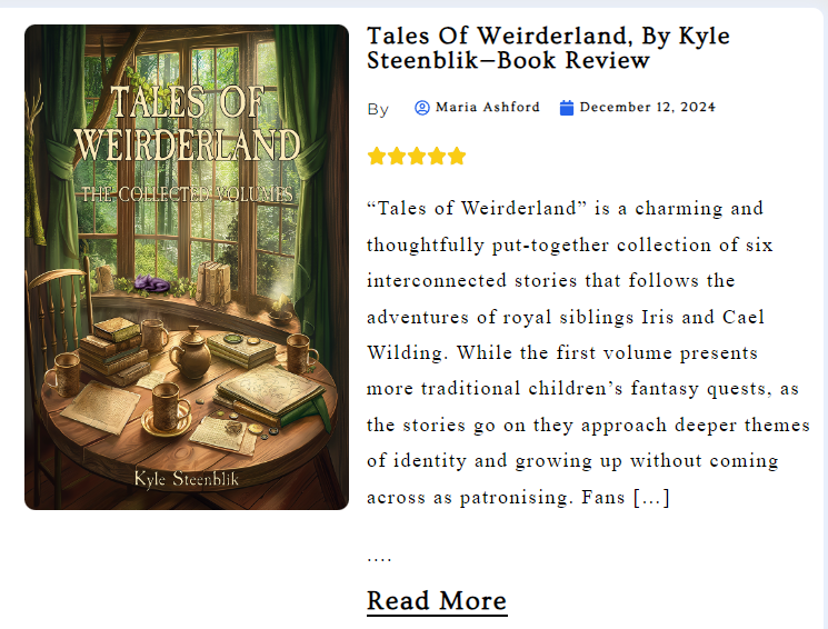 “What surprised me most was the book's emotional depth. Though it starts as a fun, lighthearted read, the second trilogy carries a weightier message. Steenblik wrote these stories as a reflection of his children's growth, and it shows... This collection is a must-read for families, fantasy lovers, and anyone who enjoys a story that doesn't take itself too seriously while still delivering heartfelt moments. If you grew up loving The Princess Bride or The Phantom Tollbooth, Tales of Weirderland will feel like coming home” — Literary Titan